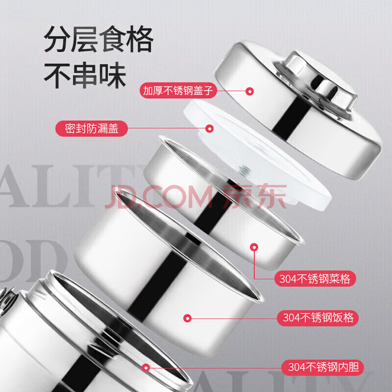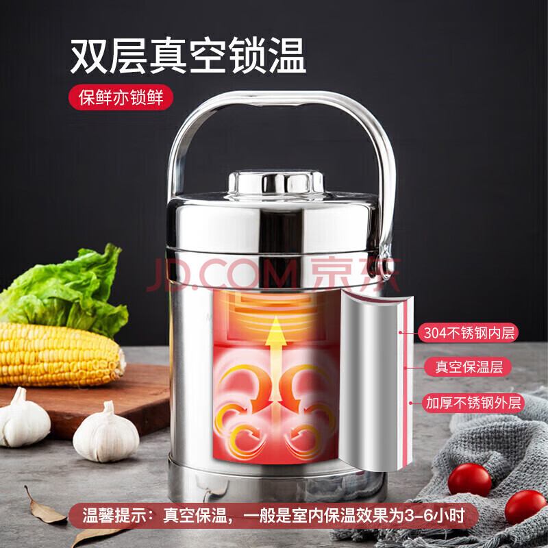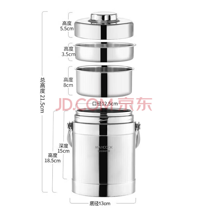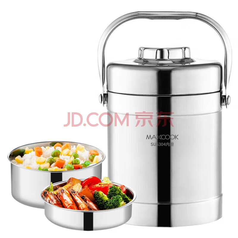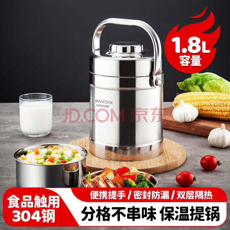 商品相册:美厨(maxcook)304不锈钢保温饭盒提锅 真空保温桶学生便当盒便携式饭盒 MCB-2.0第