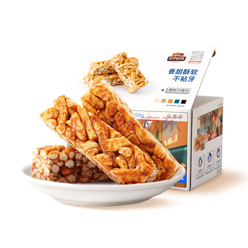 商品相册:三只松鼠黑糖味沙琪玛500g 营养早餐代餐传统香酥糕点蛋糕休闲零食第1张/共5
