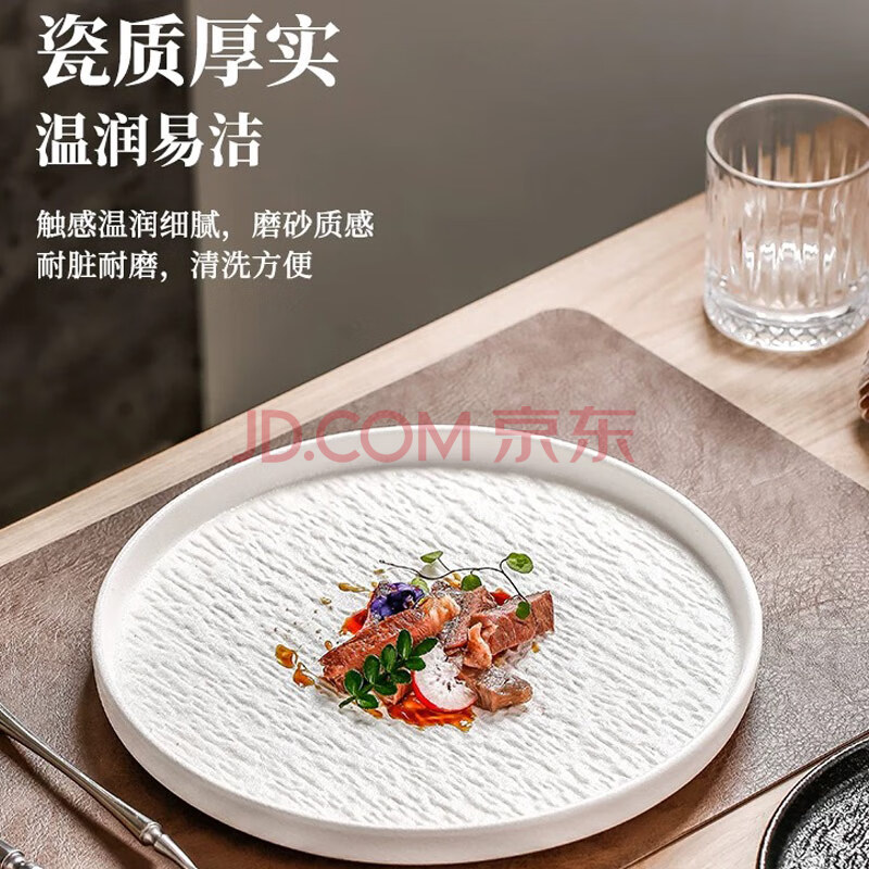 商品相册:传旗 日式陶瓷西餐盘 10.5英寸 盘子牛排盘水果盘大平盘 白色第