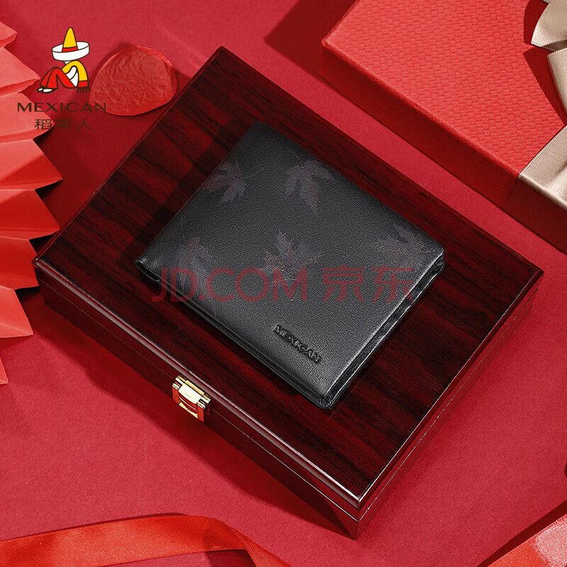 商品相册:稻草人男钱包短款真头层牛皮钱夹皮夹高档礼盒生日礼物送男生老公第
