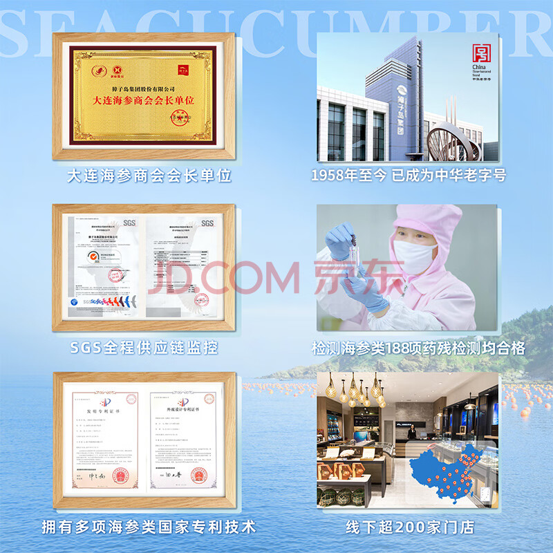 商品相册:獐子岛 大连即食海参1.2kg 31-40只 固形物90%以上 海鲜水产送礼礼盒第
