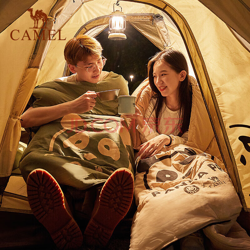 商品相册:骆驼户外露营睡袋大人便携式成人隔脏保暖加厚防寒【熊猫联名款】第