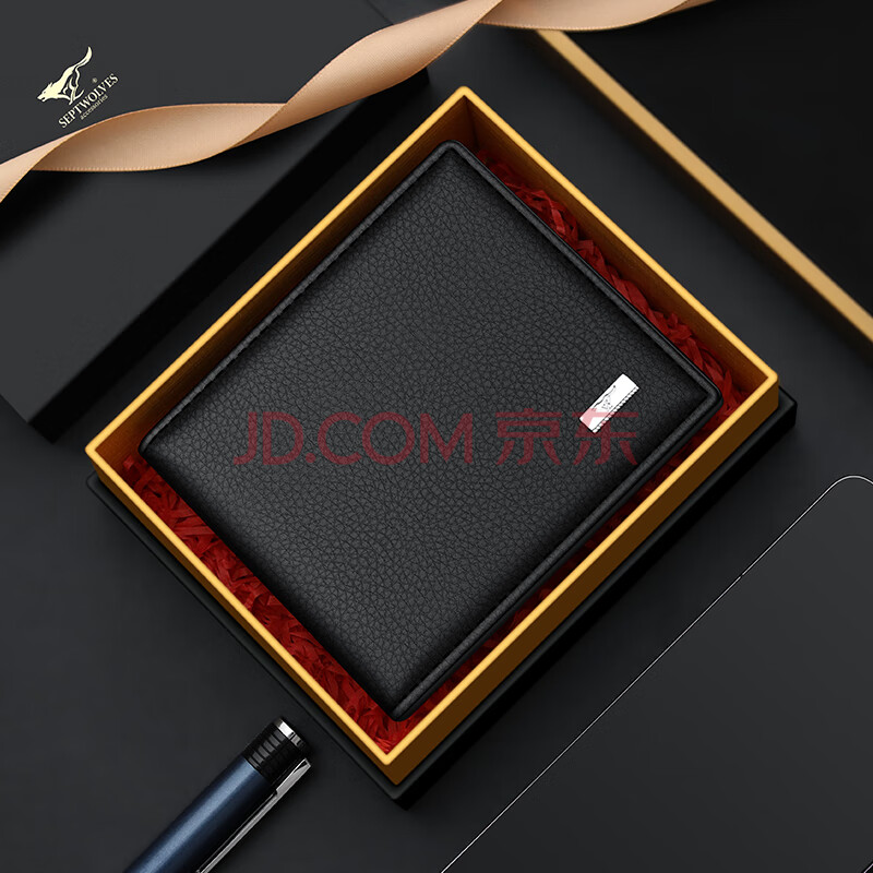 商品相册:七匹狼钱包男士真牛皮卡包短款票夹礼盒送爸爸男友老公生日礼物第