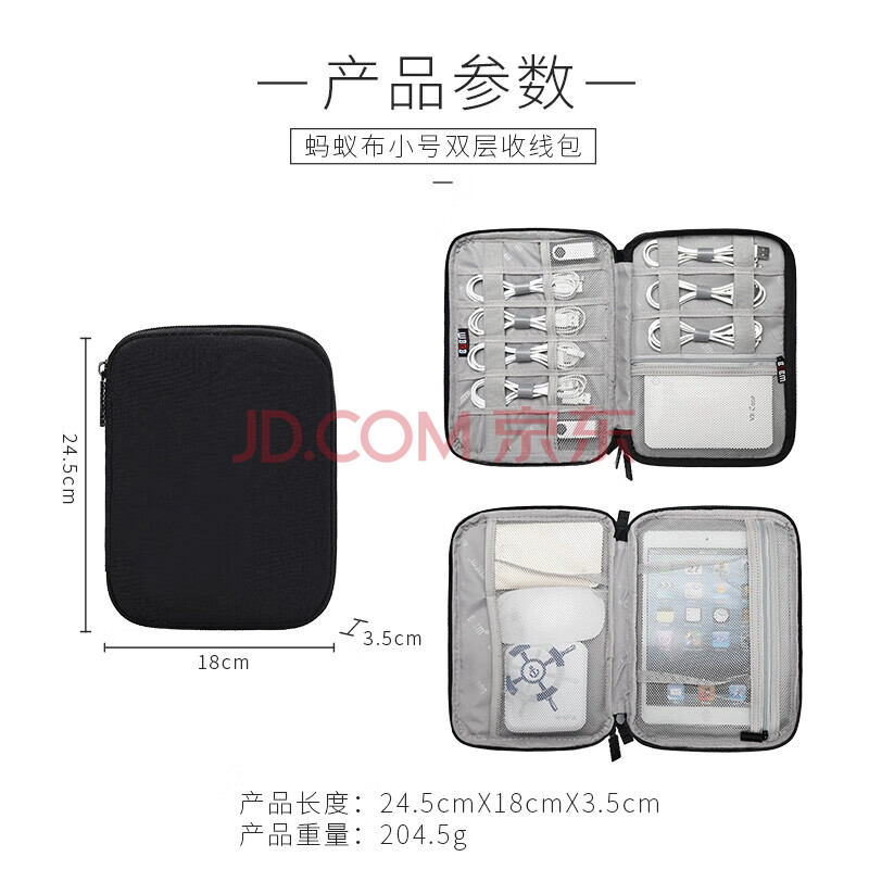 商品相册:BUBM 耳机数据线收纳包数码多功能电源充电器盒硬盘U盘旅行便携整理袋 小号双层黑色DISD-MYB第