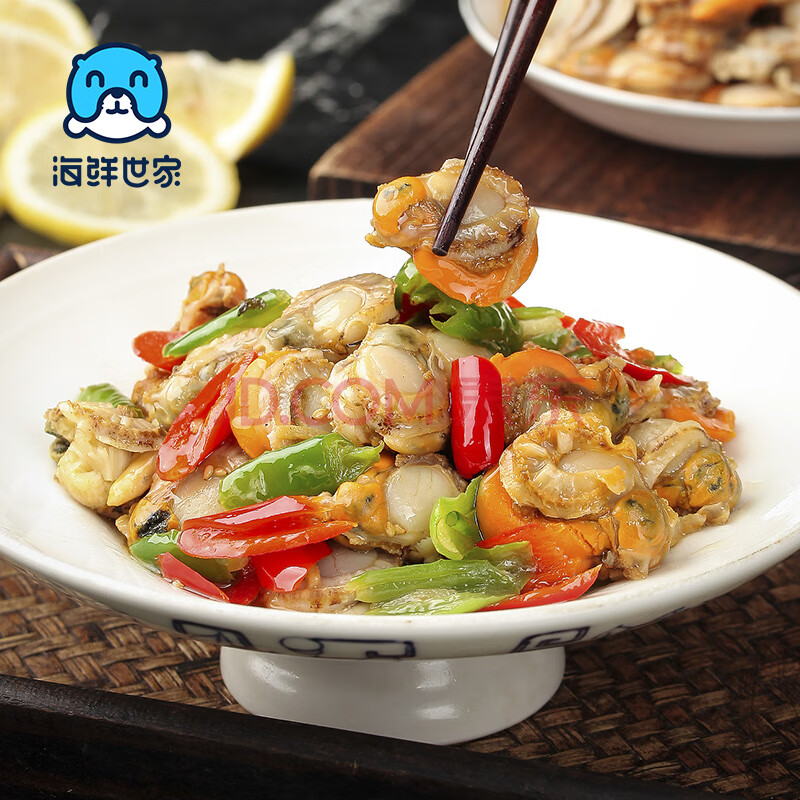 商品相册:海鲜世家冷冻大号带黄渤海扇贝肉净重450g 35-45粒裙边方便菜海鲜生鲜贝类第