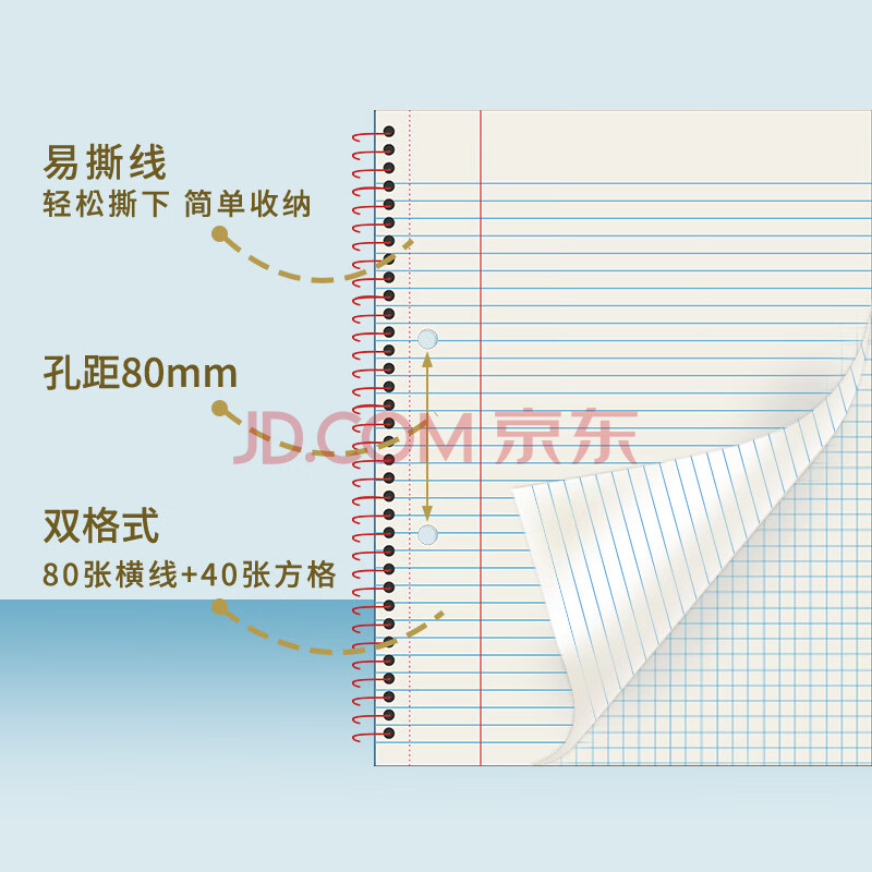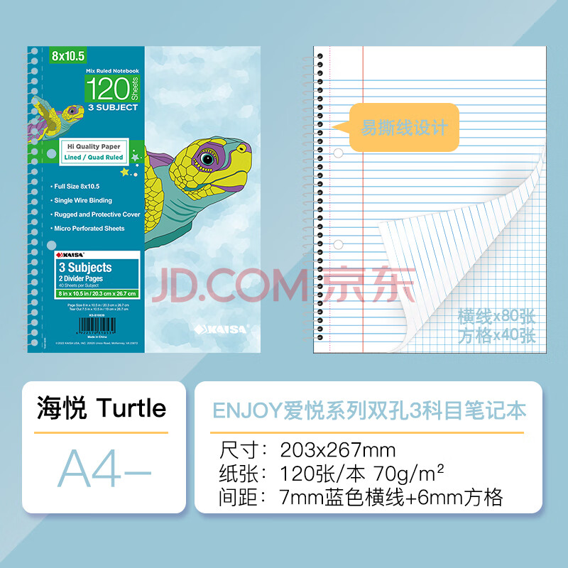 商品相册:凯萨(KAISA)两孔笔记本 120张三科目美式线圈记事本大学生考研本子 设计师款爱悦系列日记本手账本第