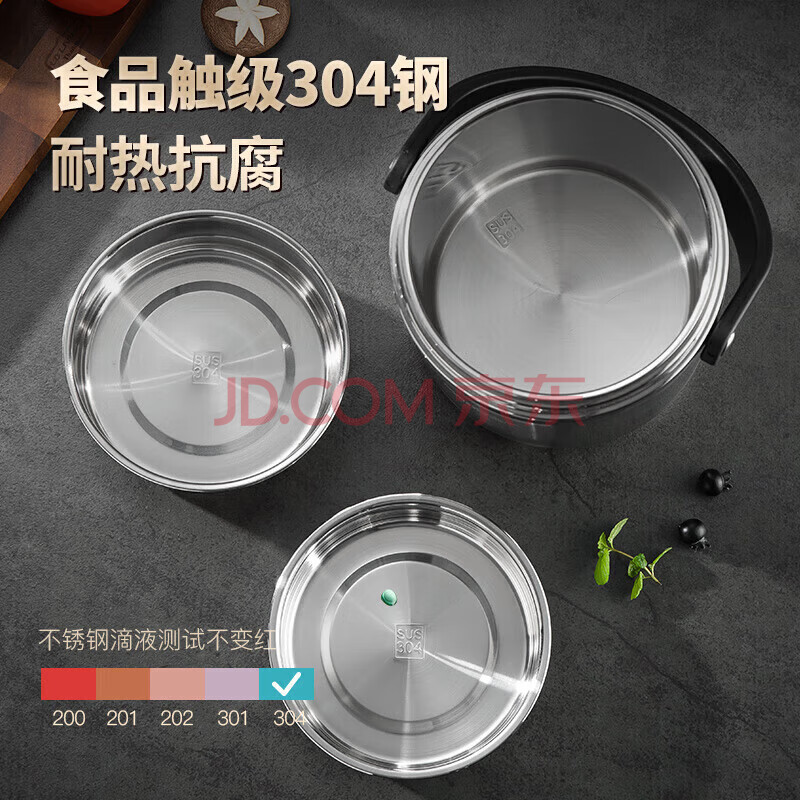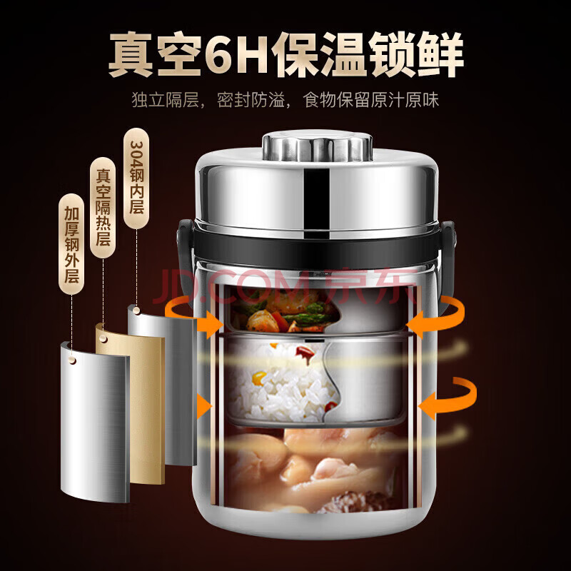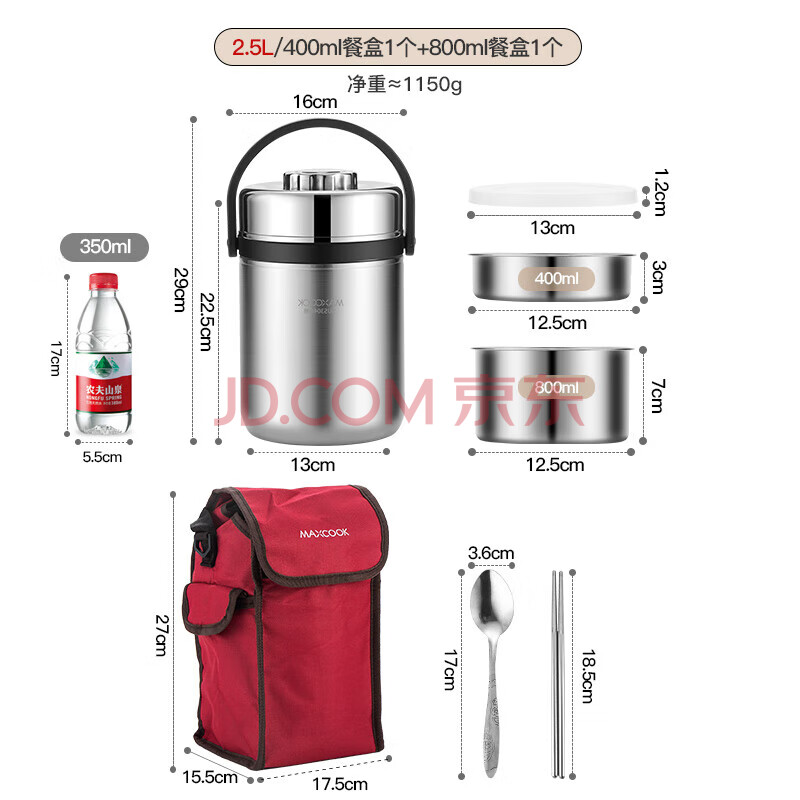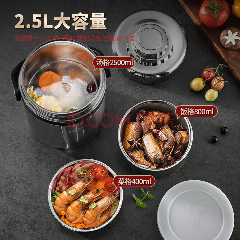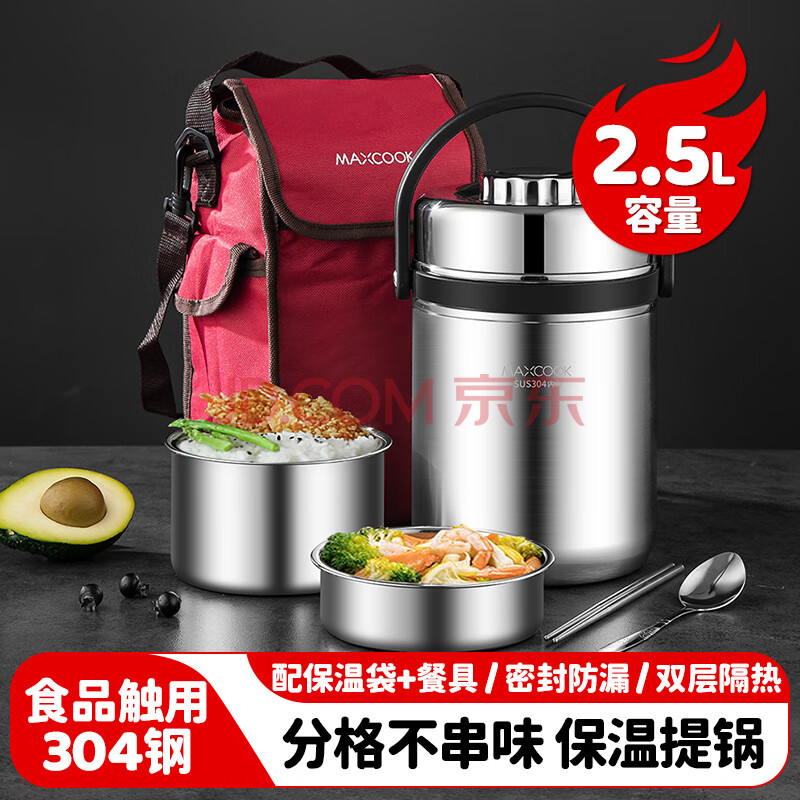 商品相册:美厨(maxcook)304不锈钢保温饭盒提锅2.5L大容量真空保温桶学生便当盒个MCTG887第