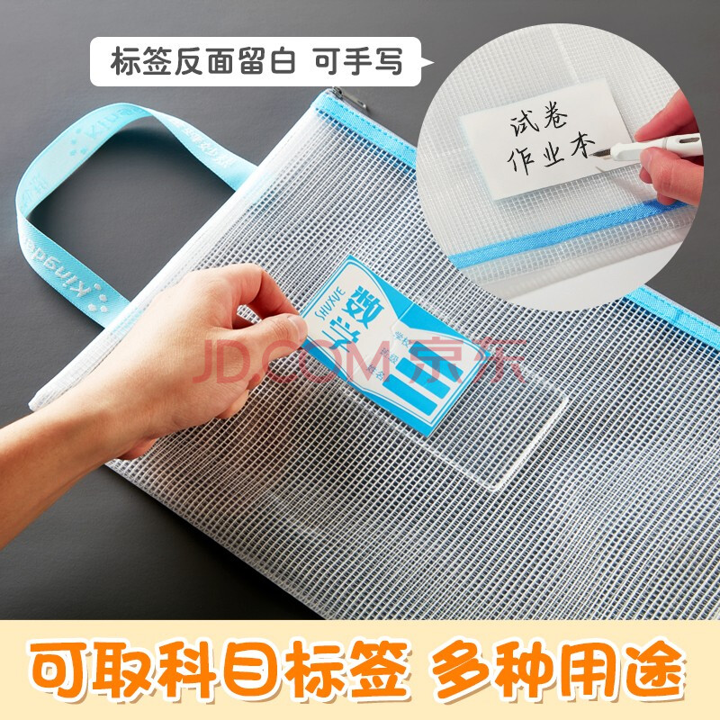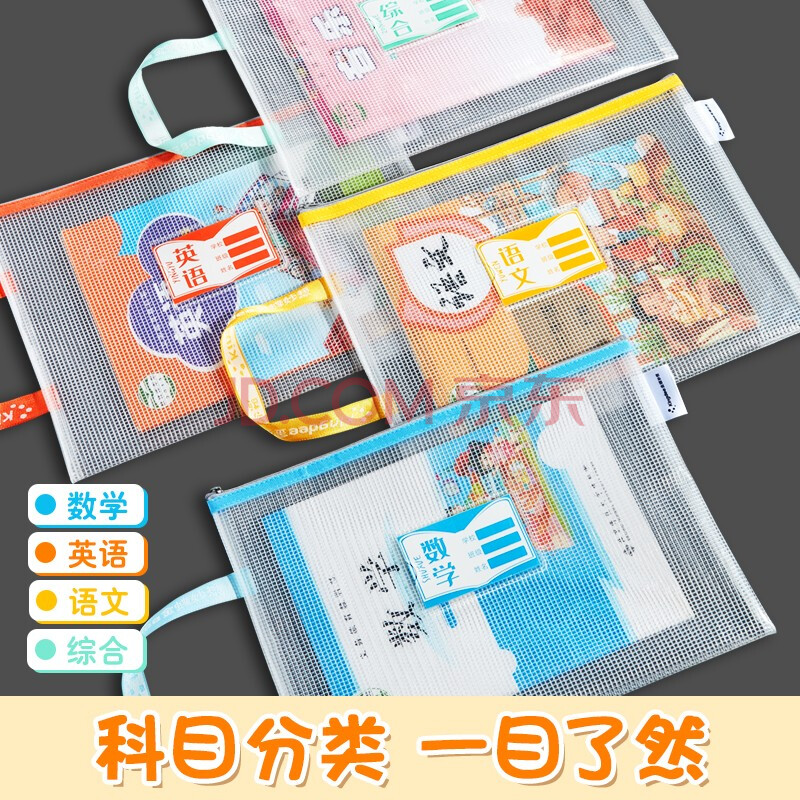 商品相册:金蝶(kingdee)开学必备EVA单层手提科目分类袋作业袋文件袋 学科分类书袋书本收纳袋试卷袋拉链4只装 W1201第