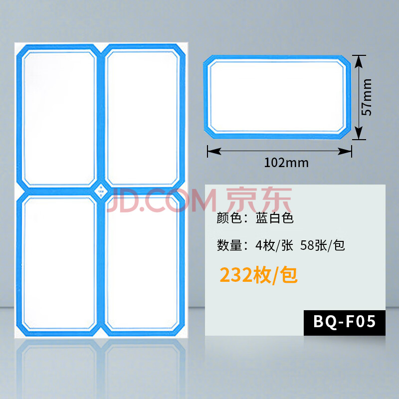 商品相册:HAILE不干胶标签纸姓名贴102*57mm口取纸 4枚/张 58张/包BQ-F05 蓝色第