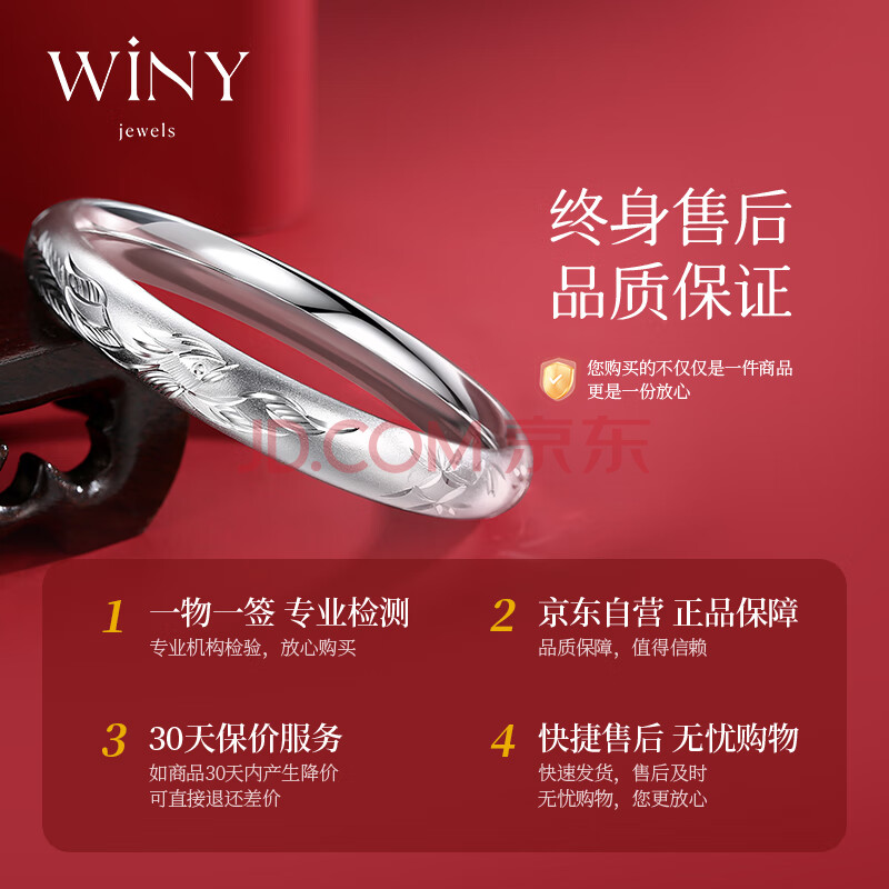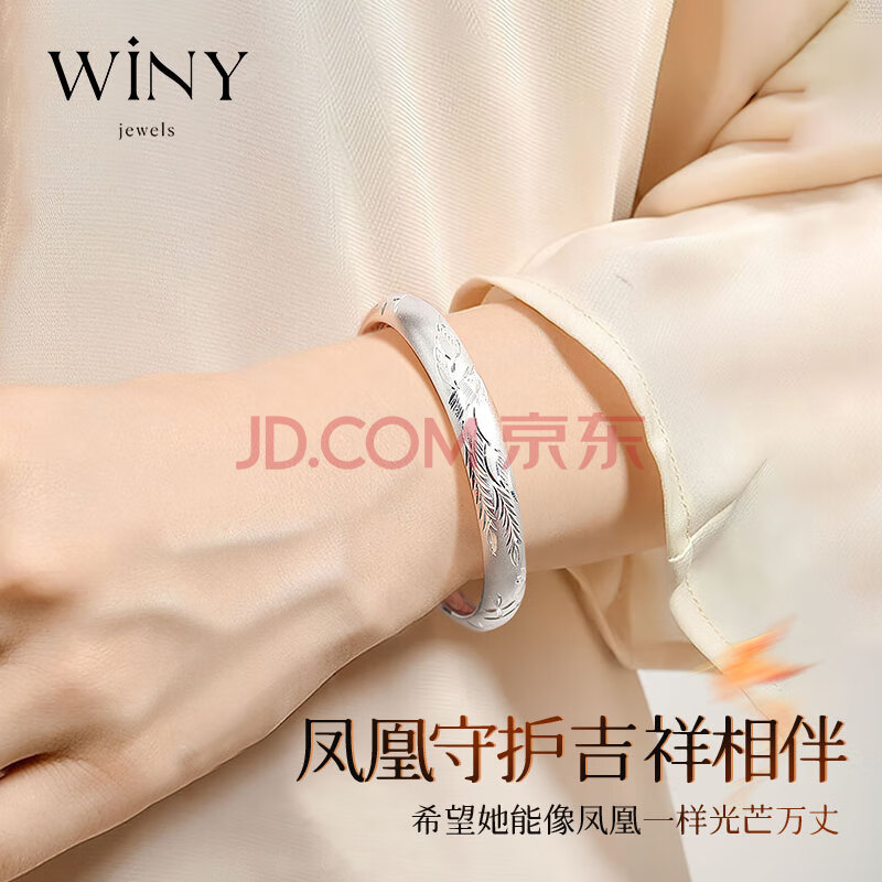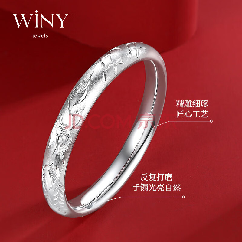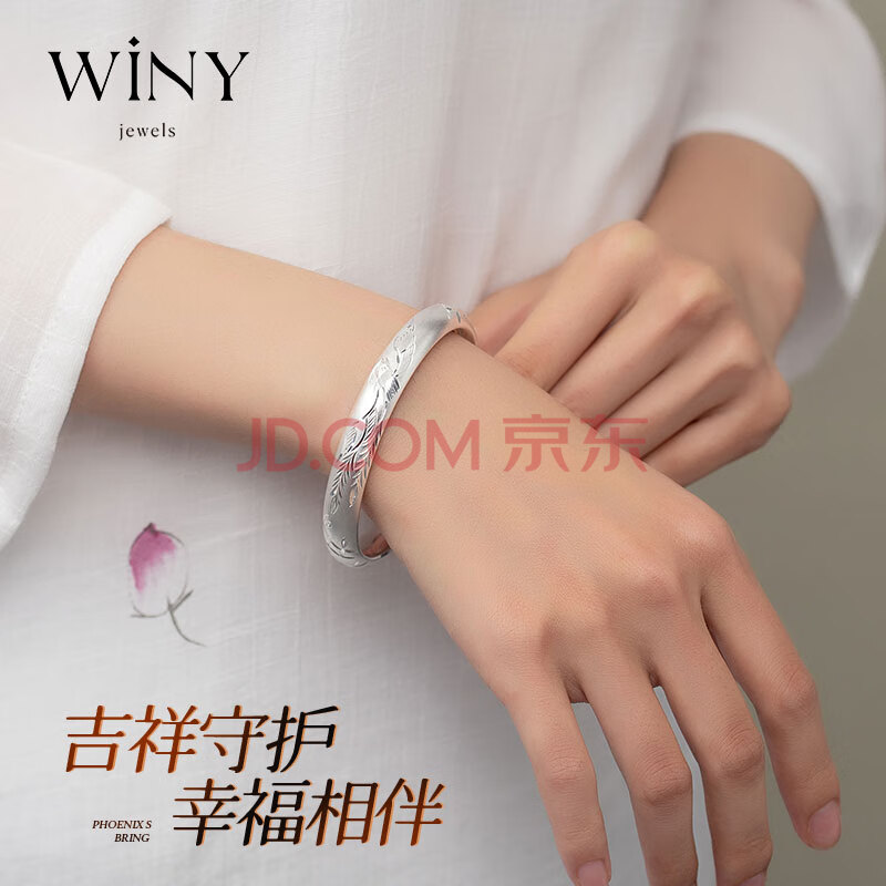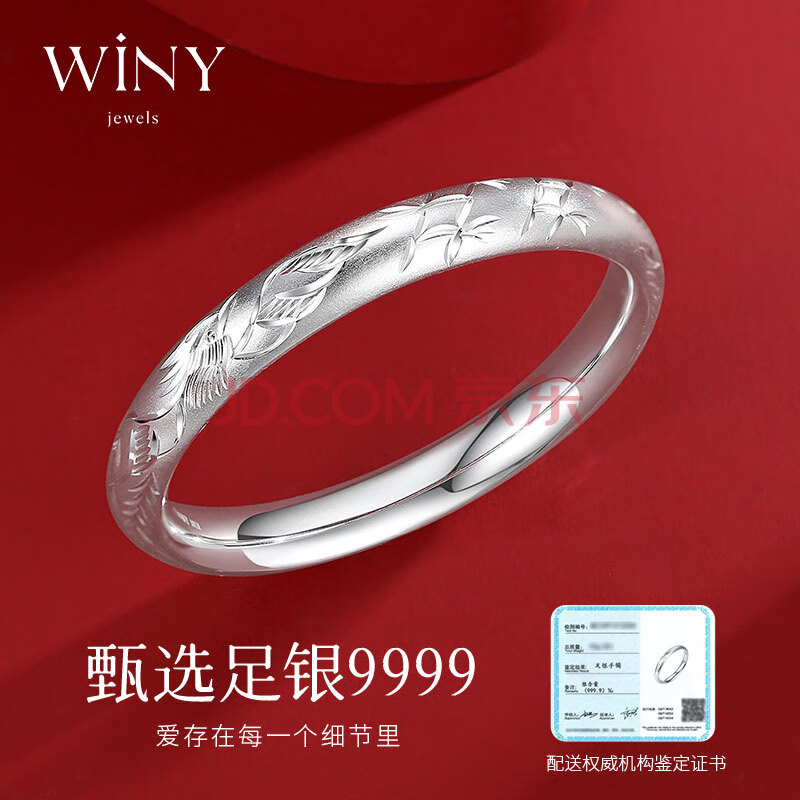 商品相册:唯一(Winy)银手镯女款足银9999古法镯子老人正品纯银饰品生日礼物送妈妈长辈第1张/共7