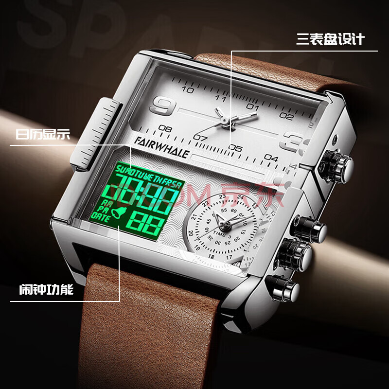 商品相册:马克华菲(MARK FAIRWHALE)手表双显全自动机械风学生手表男士腕表国表生日礼物送男友4270第