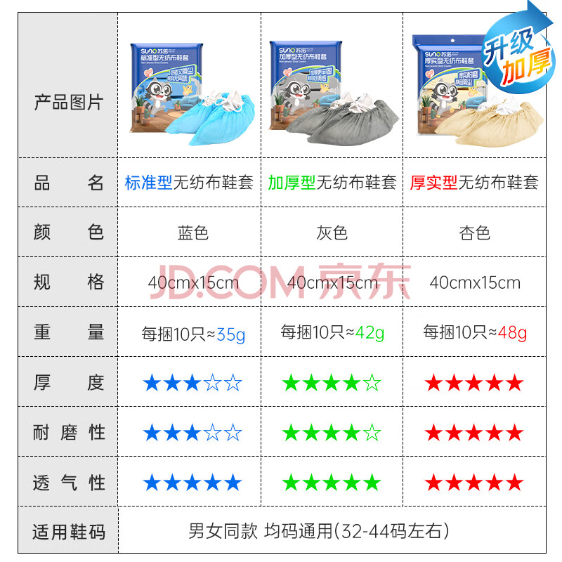 商品相册:苏诺特厚一次性鞋套40只家用透气防滑无纺布男女通用第