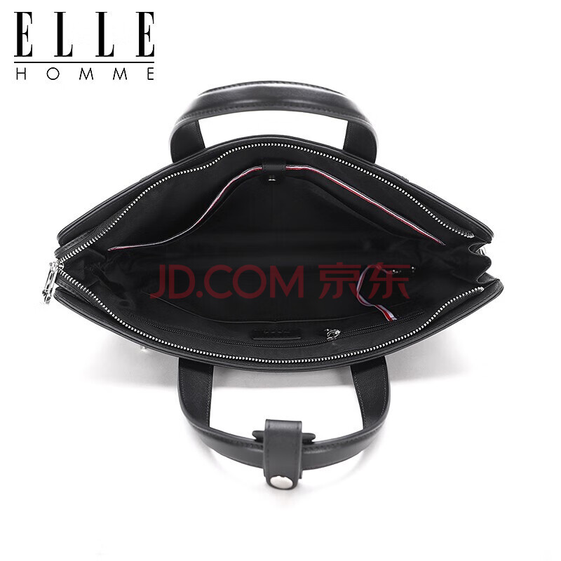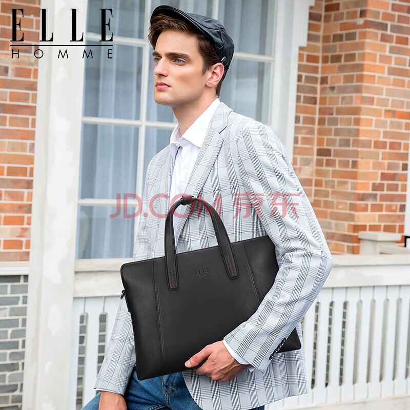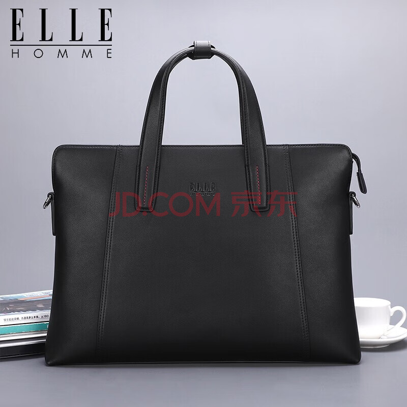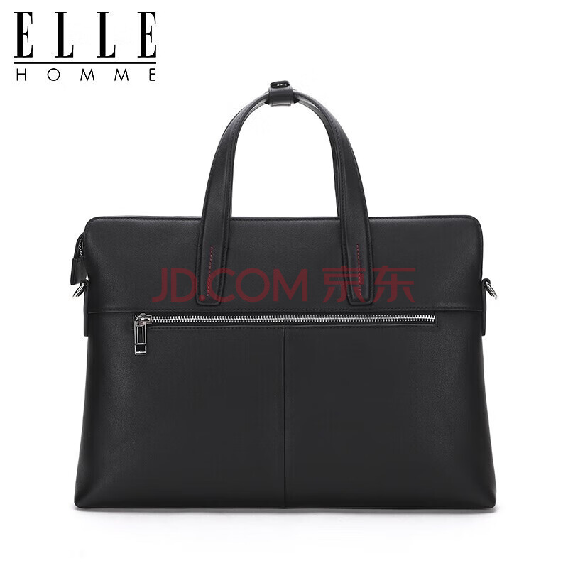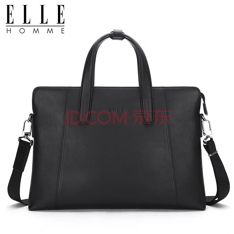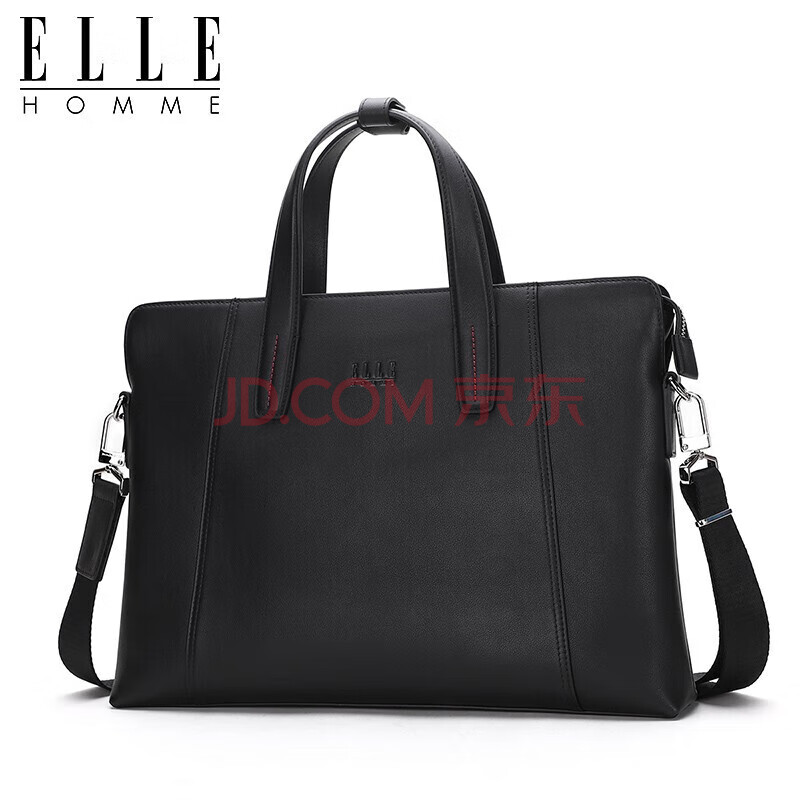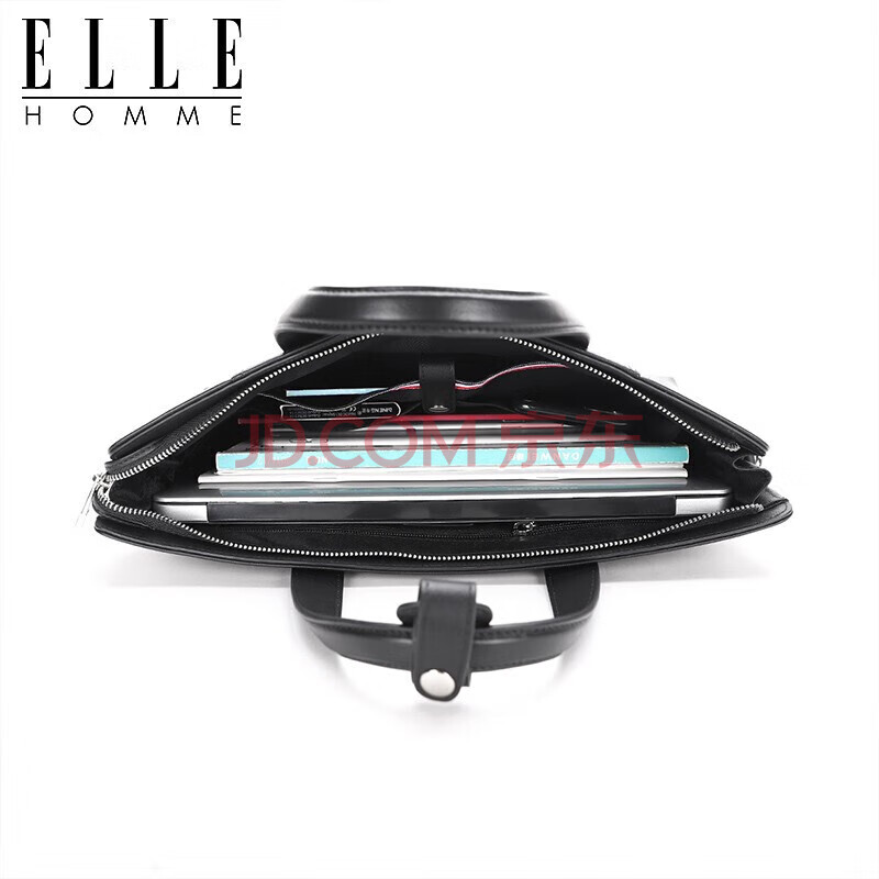 商品相册:ELLE HOMME男士公文包 时尚真皮手提包 大容量牛皮单肩斜跨包商务14英寸电脑包0710黑色第