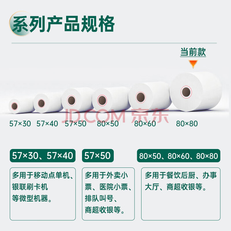 商品相册:得力(deli)80*80型60米*30卷 珊瑚海热敏收银纸 京东外卖餐饮收银打印纸ZS116【适配80mm机器 801P等】第