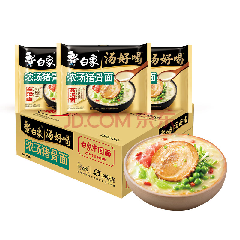 商品相册:白象 【王一博代言】方便面 汤好喝浓汤猪骨汤面114g*24袋整箱装泡面第