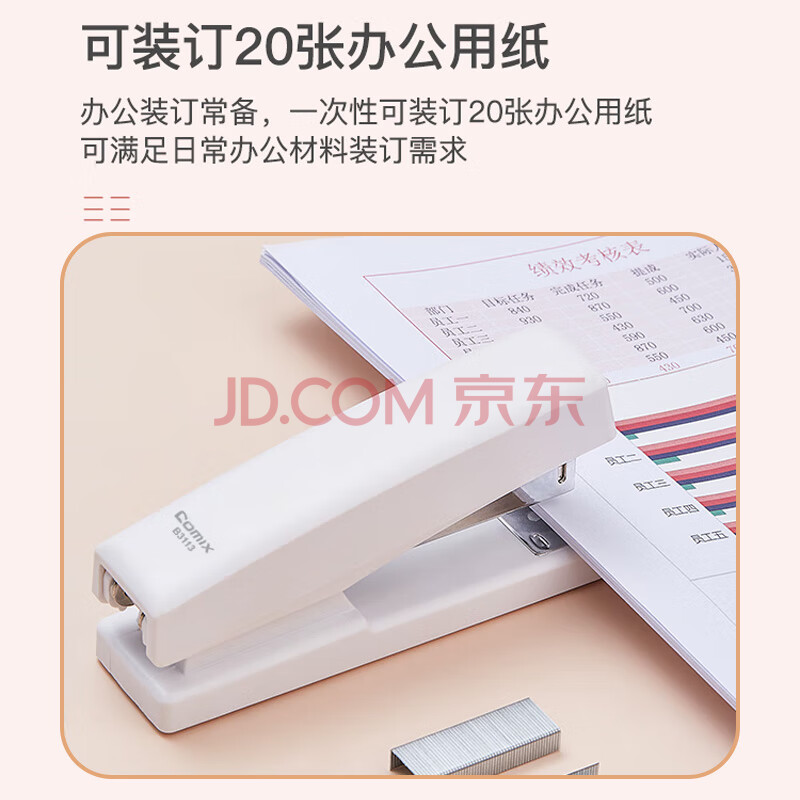 商品相册:齐心(COMIX)12#学生办公订书机/订书器 莫兰迪色 20页 适用24/6、26/6钉 办公学习用品 象牙白B3113第