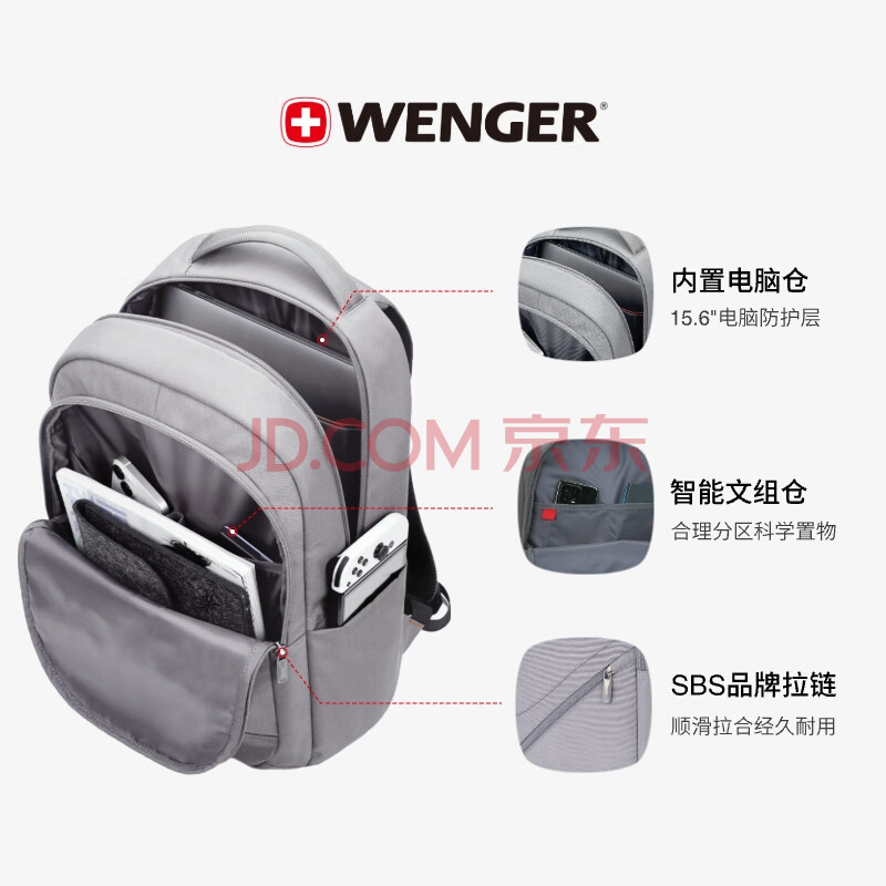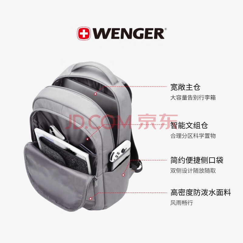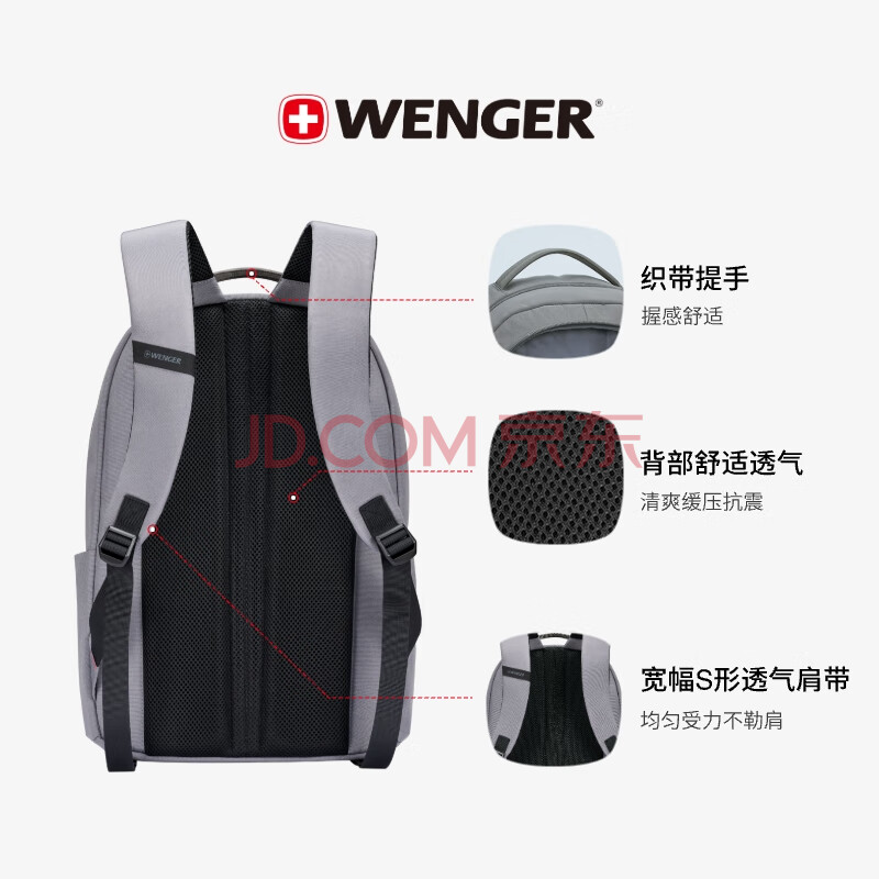 商品相册:威戈15.6英寸笔记本电脑包通勤双肩包背包书包男女灰色第