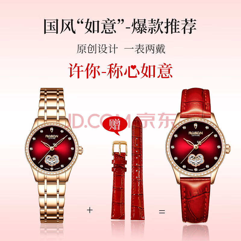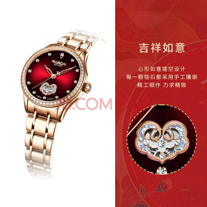商品相册:劳士顿(ROSDN)如意国风手表女防水全自动机械女士手表十大品牌生日礼物送老婆第