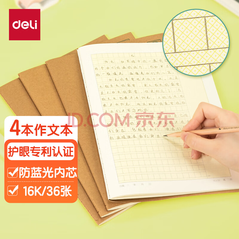 商品相册:得力(deli)护眼作业本300格4本16K36张作文本小学生作业本软抄笔记本子PF1636第