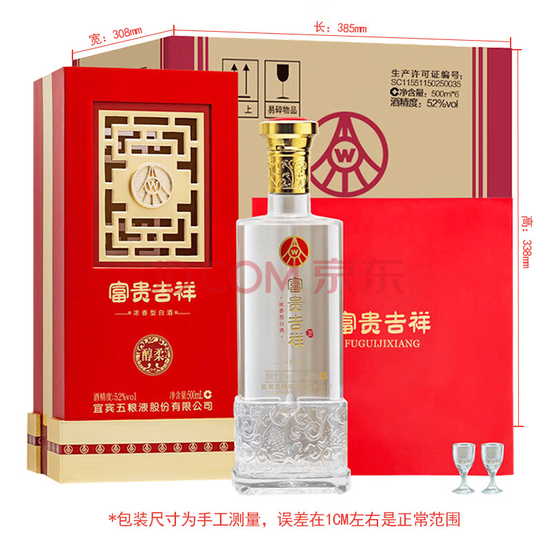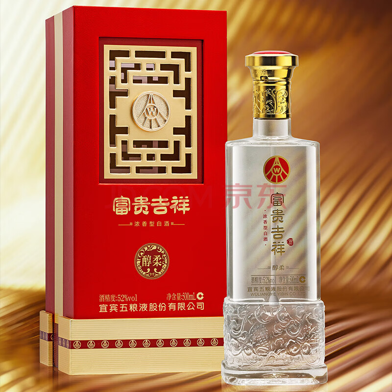 商品相册:五粮液股份 富贵吉祥醇柔 浓香型白酒礼盒 52度500ml*6瓶整箱装纯粮酒第
