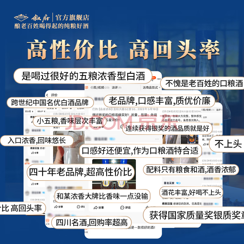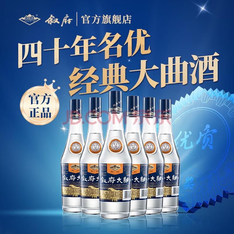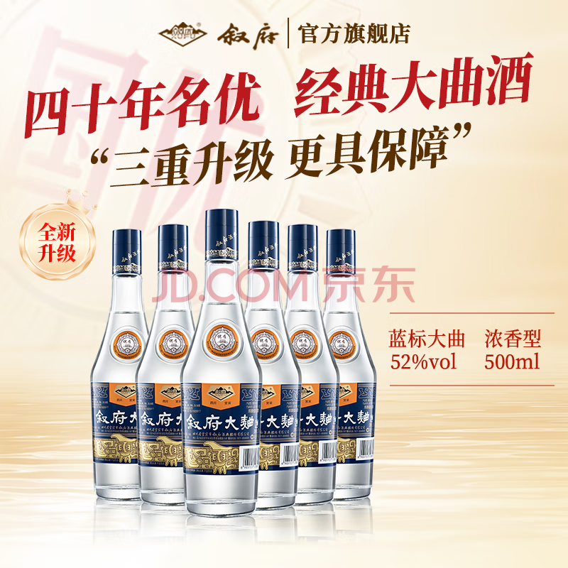 商品相册:叙府 大曲蓝标 浓香型白酒 52度 500ml*6瓶 整箱装 纯粮食酒第