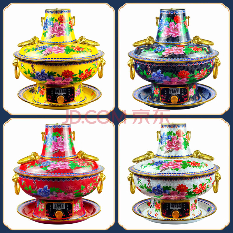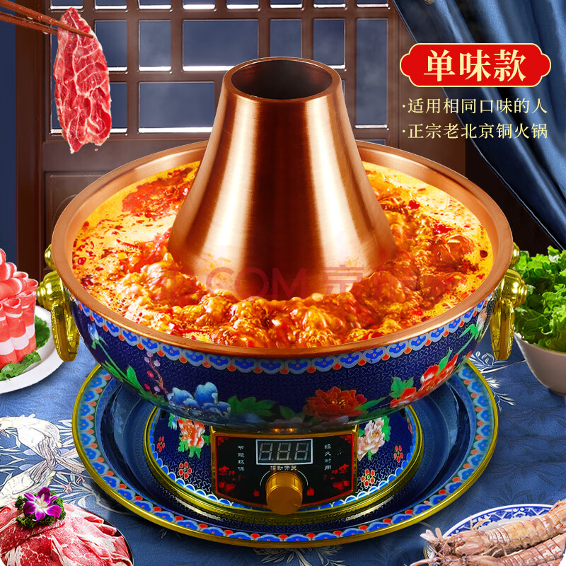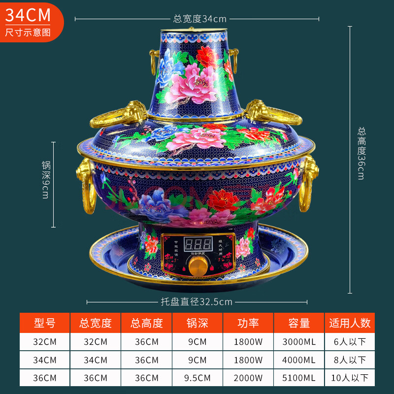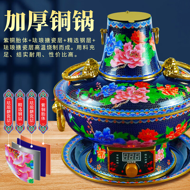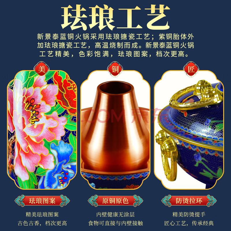 商品相册:郭一元新景泰蓝插电珐琅铜火锅老北京鸳鸯锅紫铜火锅-宫廷蓝34cm鸳鸯第