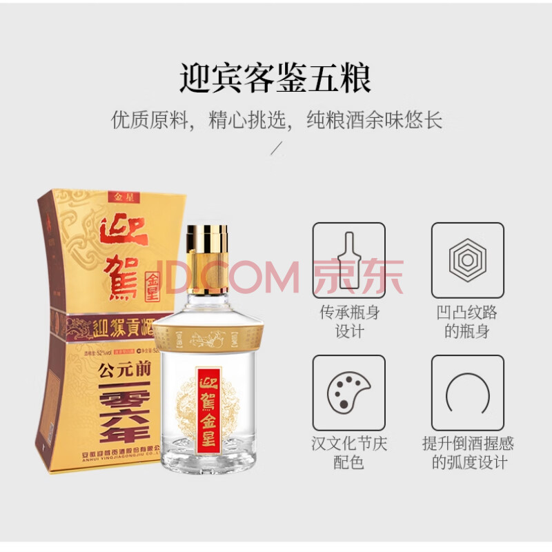 商品相册:迎驾贡酒金星 浓香型 白酒 52度 520ml 单瓶装第
