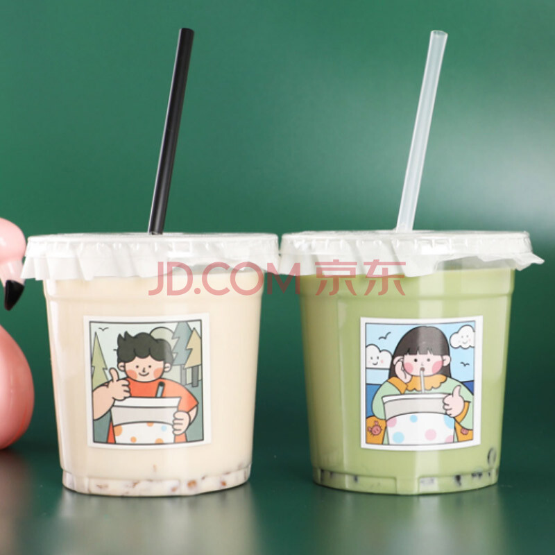 商品相册:全适 一次性带盖PET饮料杯500ml*20套 塑料杯嘟嘟杯含吸管防漏纸贴纸第