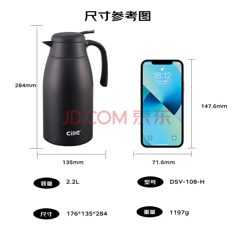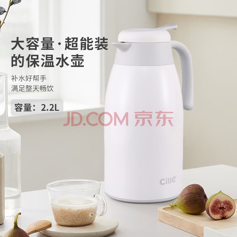 商品相册:希乐居家多用大容量水壶304不锈钢研磨内胆热水壶办公暖水壶黑色2.2L第