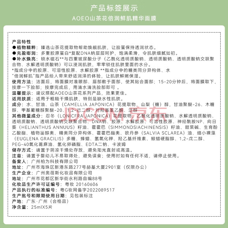 商品相册:AOEO山茶花鲜肌精华面膜10片水嫩弹润补水保湿舒缓男女第