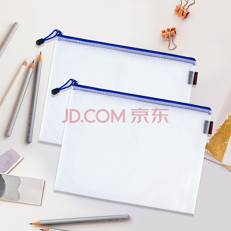 商品相册:金得利4只A5加厚网格拉链袋文件袋资料袋财务凭证小票据袋办公文件整理收纳袋防水学生文具袋子FB8804第