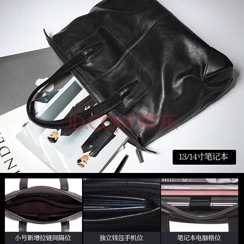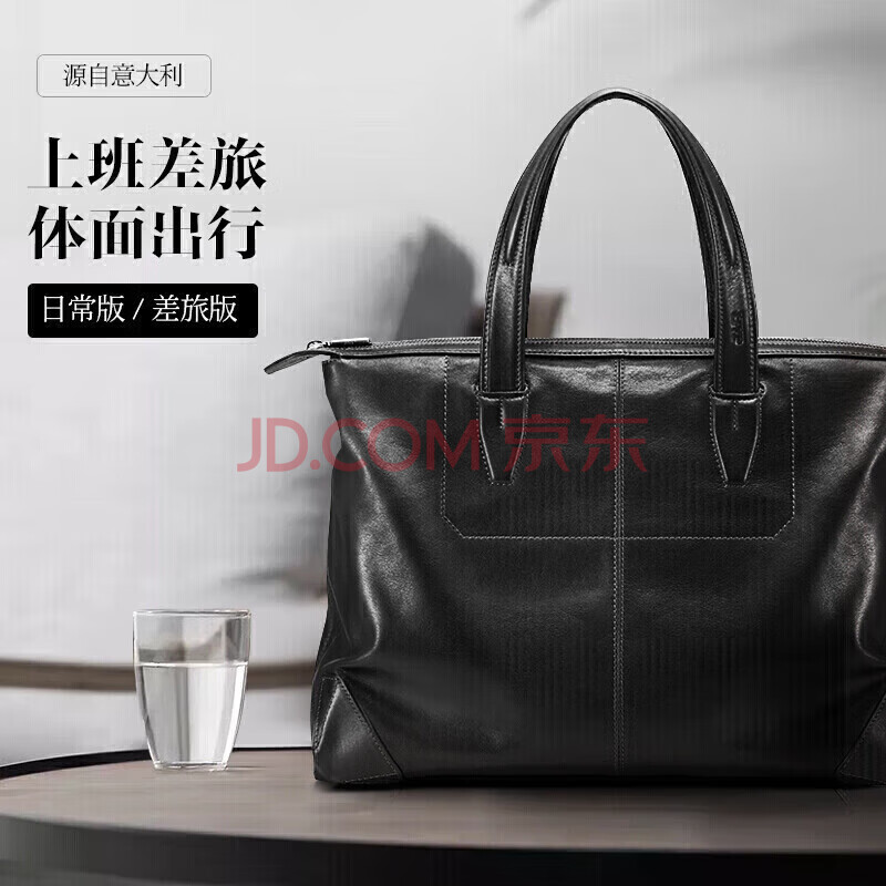 商品相册:BVP头层牛皮男士手提包商务休闲旅行包大容量软皮公文包送男友第