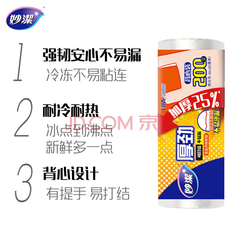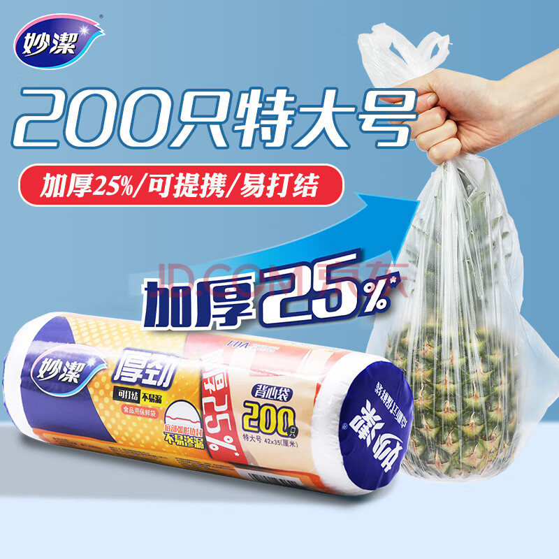 商品相册:妙洁 保鲜袋背心式 特大号200只 食品袋 厚劲第