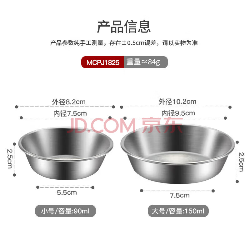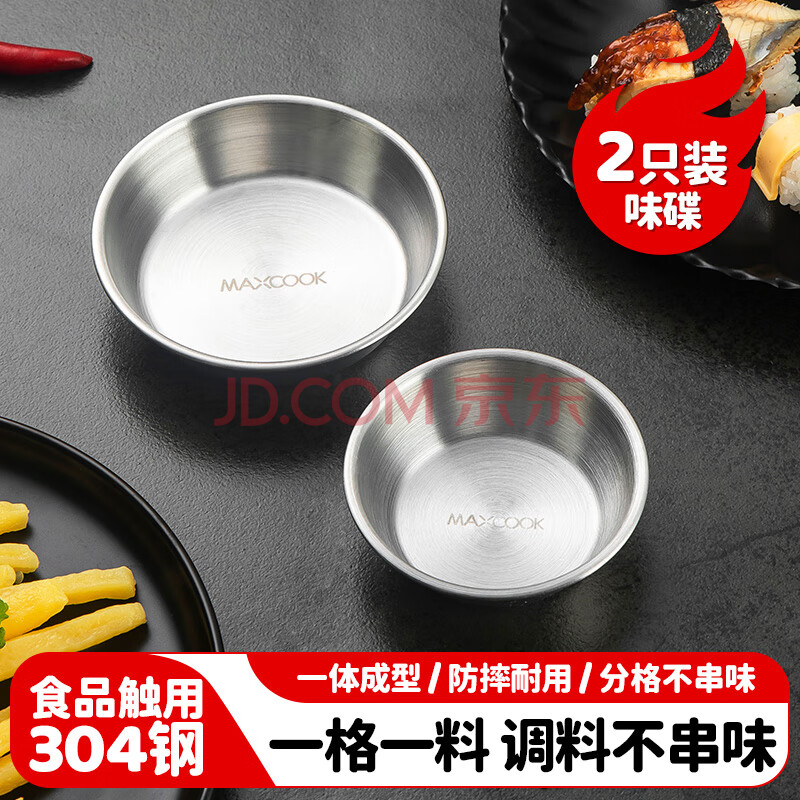 商品相册:美厨(maxcook)调味碟调料碟 304不锈钢味碟碟子 家用餐具调料碟 2只装MCPJ1825第