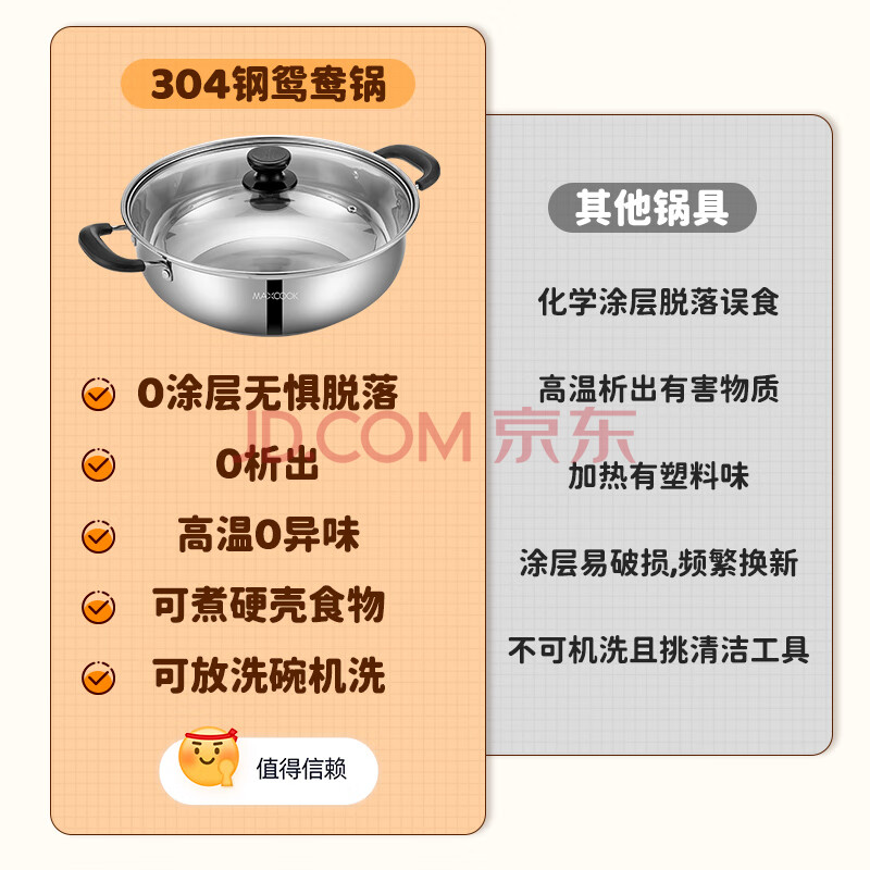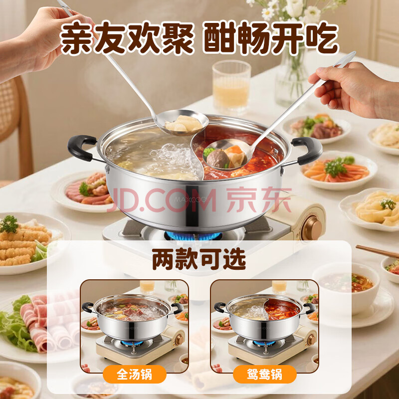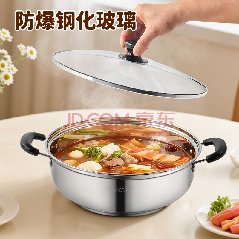 商品相册:美厨(maxcook)304不锈钢火锅26cm 汤锅电磁炉火锅复底带盖 送一对火锅勺MH-26第