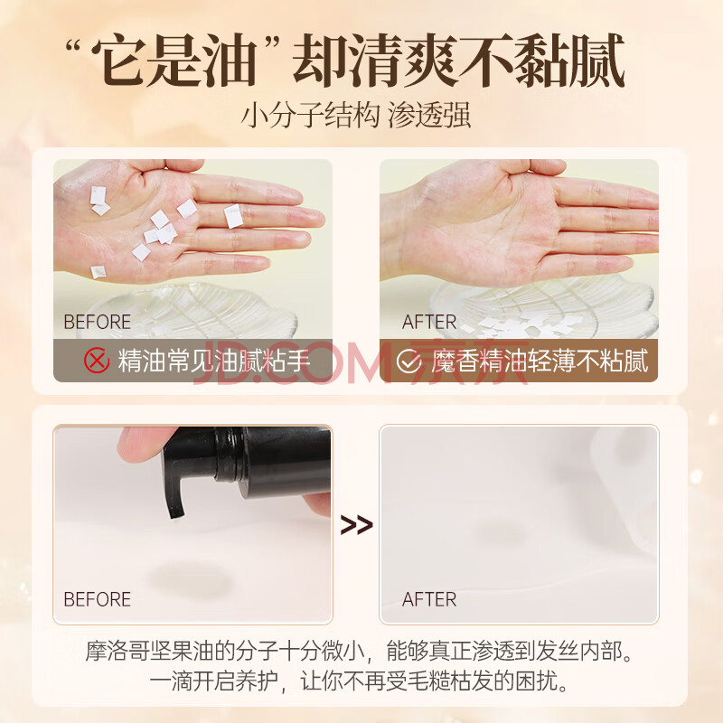 商品相册:魔香护发精油防毛躁干枯摩洛哥香头发精油烫发直发柔顺亮泽免洗营养液第