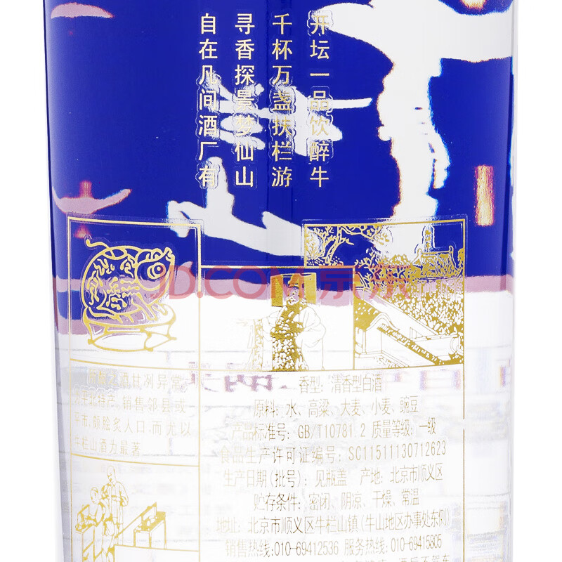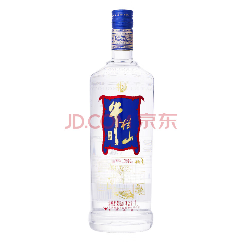 商品相册:牛栏山 百年二锅头 蓝标 清香型白酒 45度 1L*6瓶 整箱装第