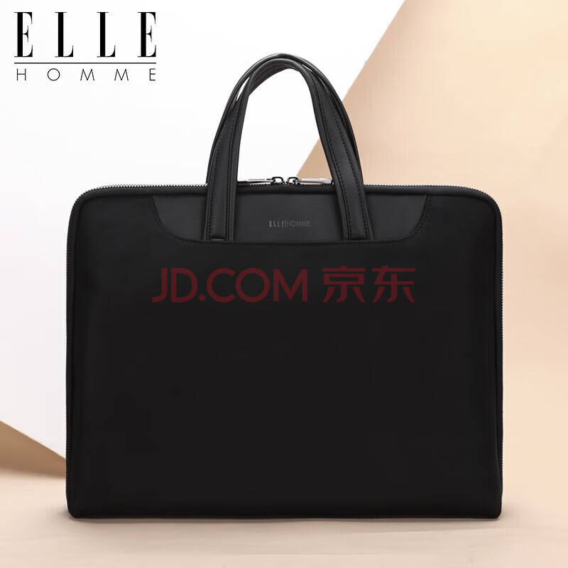 商品相册:ELLE HOMME 商务男士公文包 尼龙复合帆布手提包 休闲电脑包男包03510黑色第