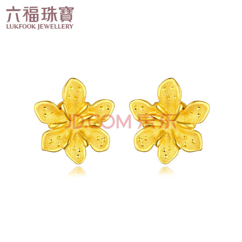 商品相册:六福珠宝 足金栀子花黄金耳钉 计价 G01G0027DS 约1.00克第
