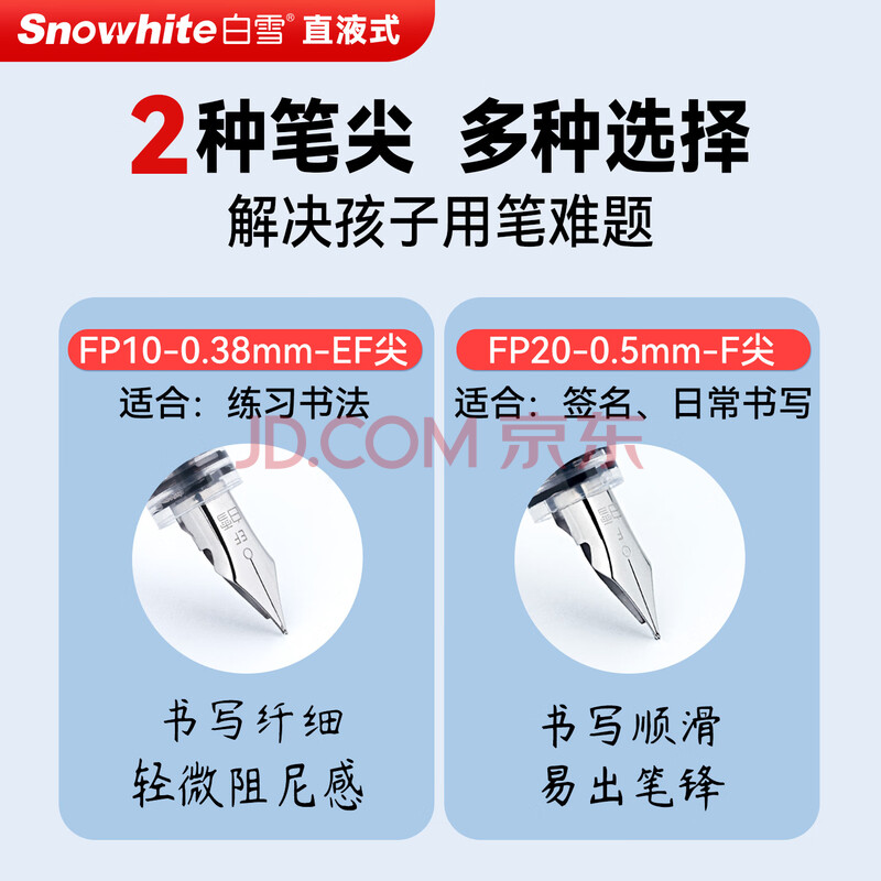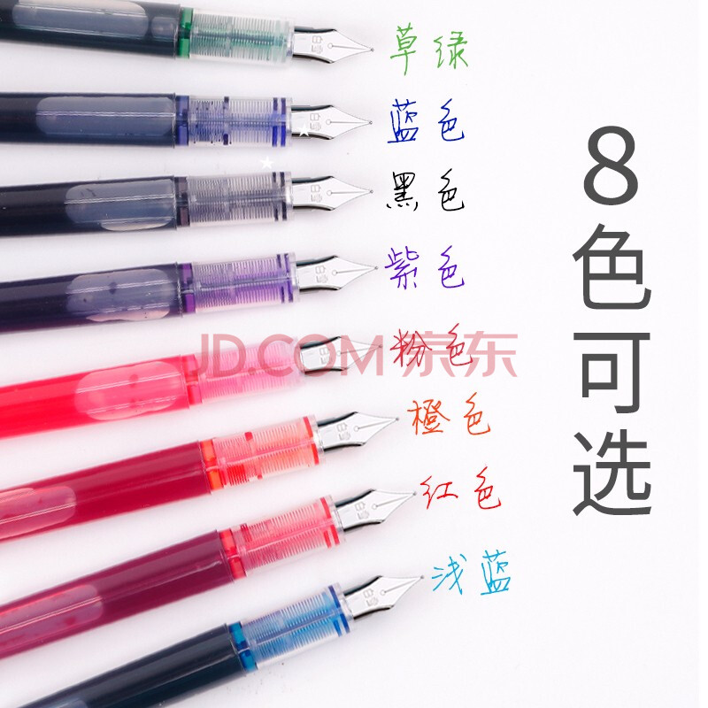 商品相册:白雪(snowhite)直液式钢笔免换墨囊彩色手账笔美工 学生练字书写钢笔字帖一次性钢笔可擦F明尖0.5mm 彩色8支FP20第
