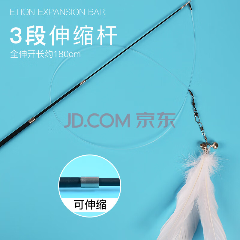 商品相册:加仕高猫咪玩具逗猫棒幼猫羽毛铃铛宠物玩具伸缩加长钓鱼杆用品第1张/共8