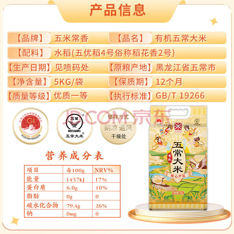 商品相册:五米常香五常有机原粮稻花香2号五常大米有机米当季新米 东北大米 10斤第