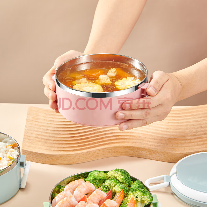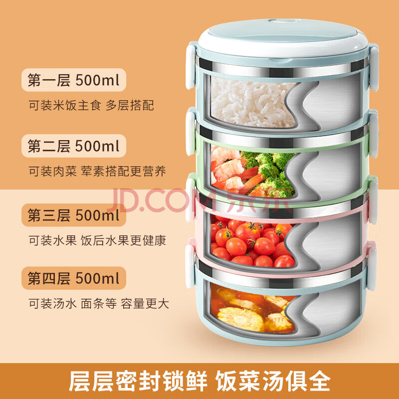 商品相册:沃德百惠(WORTHBUY)不锈钢饭盒成人保温饭盒便携分隔可爱便当盒学生2层餐盒 蓝色2层第