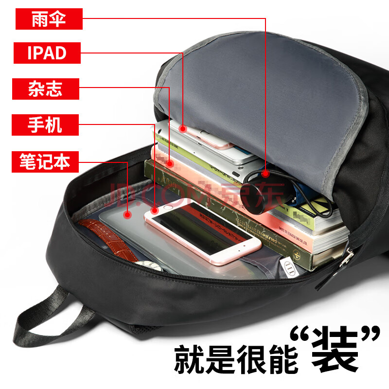 商品相册:第九城(V.NINE)双肩包男士电脑包14英寸大容量背包防泼水学生书包防泼水通勤背包第