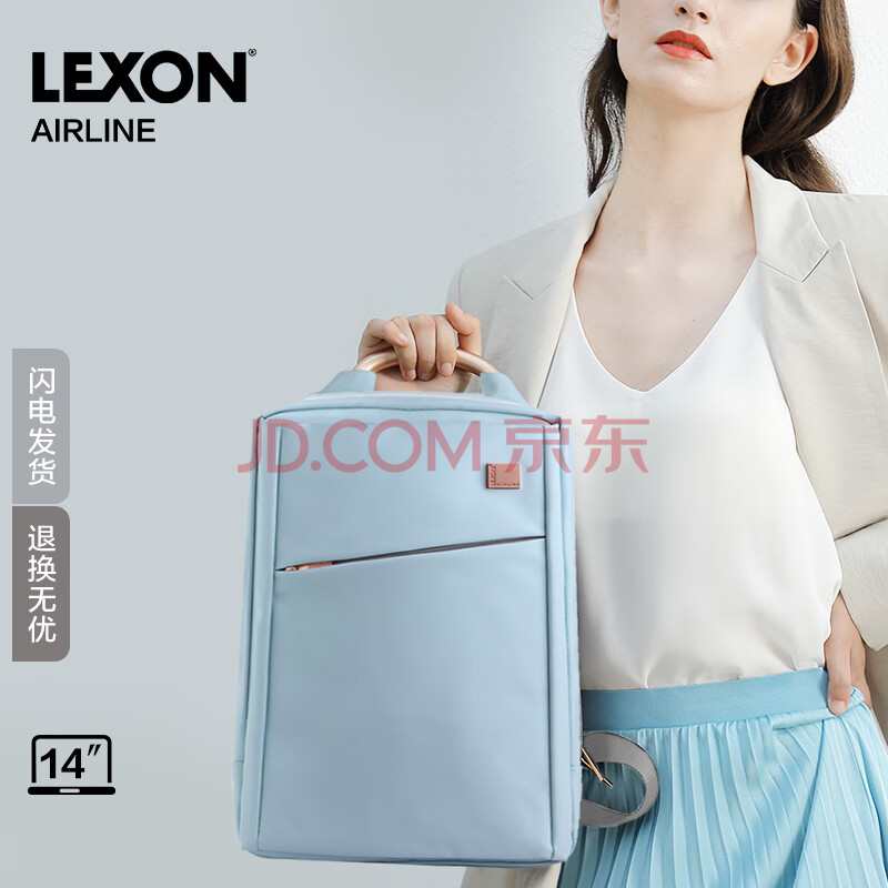 商品相册:乐上(LEXON)双肩包女14英寸商务笔记本电脑包时尚书包通勤旅行背包PU浅蓝色第