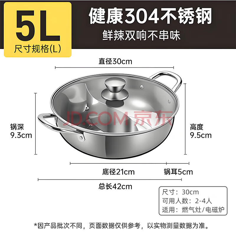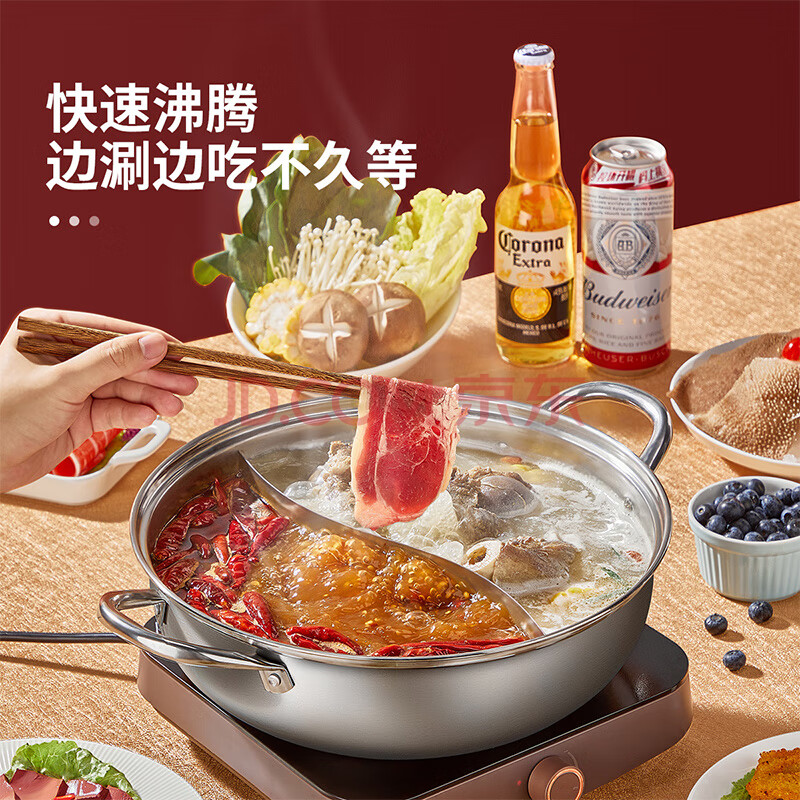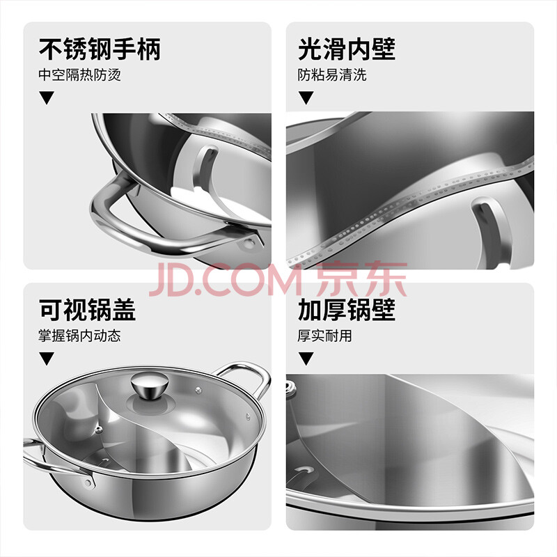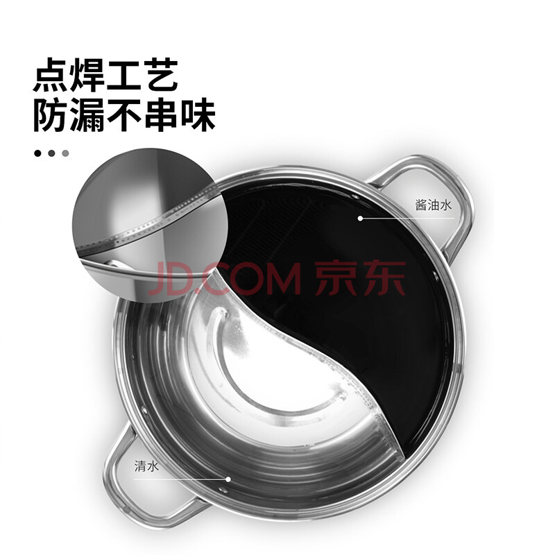 商品相册:炊大皇 鸳鸯火锅30cm 304不锈钢 易洁火锅盆汤锅电磁炉通用 4-6人第1张/共7