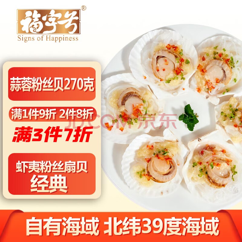 商品相册:福字号冷冻蒜蓉粉丝虾夷扇贝大号6只270g去内脏无沙烧烤深海餐第