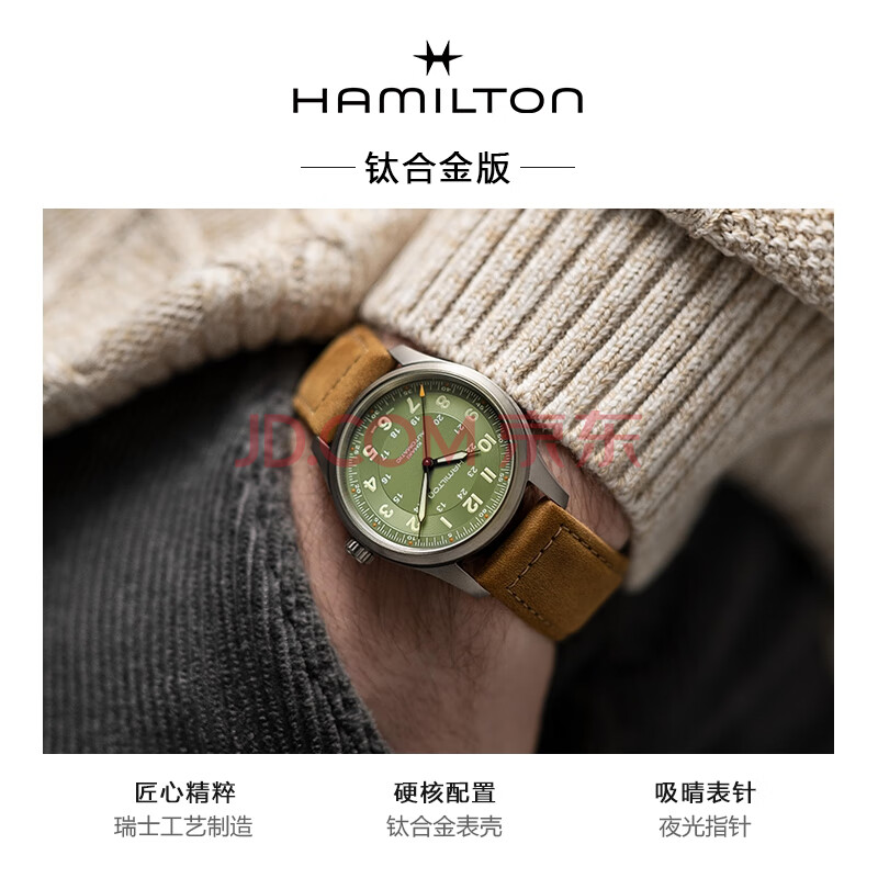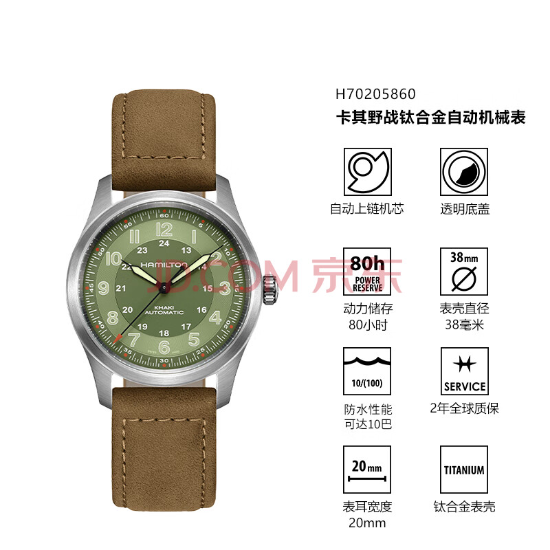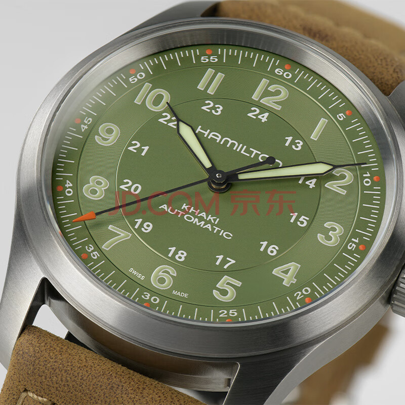 商品相册:汉米尔顿(Hamilton)汉密尔顿卡其野战钛金属38绿盘皮带瑞士手表军表机械表男款礼物第