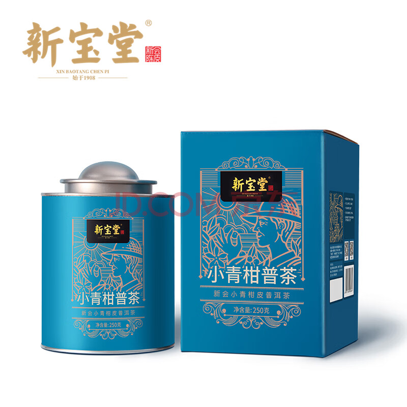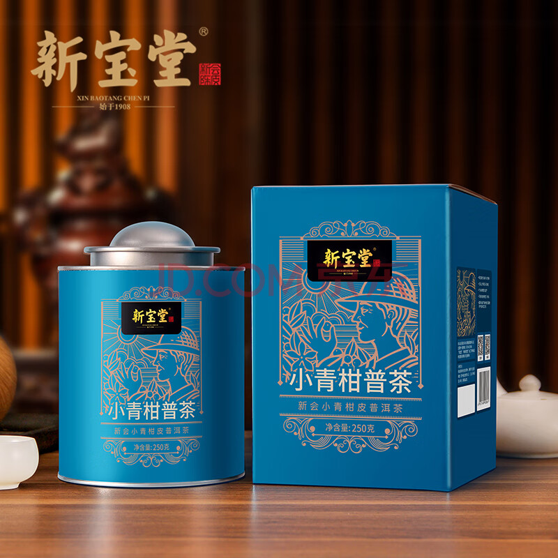 商品相册:岭南新宝堂 小青柑柑普茶蓝罐礼盒250g 新会小青柑普洱熟茶第1张/共4