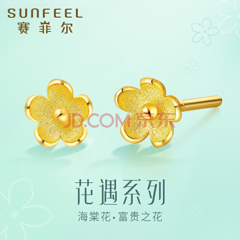 商品相册:赛菲尔 黄金耳钉女足金999.9海棠花朵耳钉小清新小金花耳环耳饰送女友 一对耳钉 约0.7克第